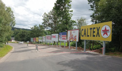 Il y a 460 jours - Le banking du virage de Stavelot sur l'ancien tracé de Spa-Francorchamps a fait peau neuve avec des publicités d'époque : entretien du patrimoine !F1i.fr