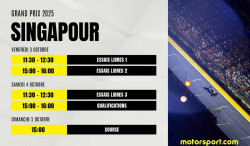 Il y a 95 jours - Le Grand Prix de Singapour, disputé sur le circuit urbain de Marina Bay, est la 18e manche de la saison 2025 de Formule 1.Lire aussi :Formule 1Pourquoi Piastri ne sera pas pénalisé à...Motorsport.com